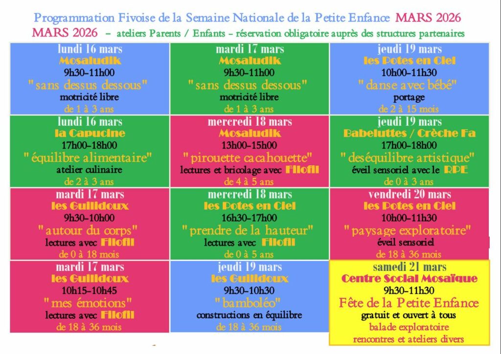 Chères familles, la Semaine Nationale de la Petite Enfance se tiendra du 16 au 21 mars.