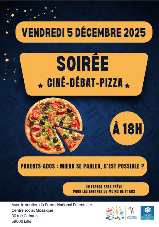 Parents et ados rejoignez-nous vendredi 05 décembre à 18h pour notre soirée ciné-pizza !